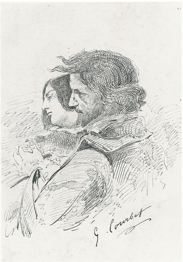 Compare the painting to a sketch for Courbet's The Lovers, for instance, and you can see the similarity in their compositions. A separate article on Courbet's finished painting demonstrates how the two images, 250 years apart, share similar meaning.