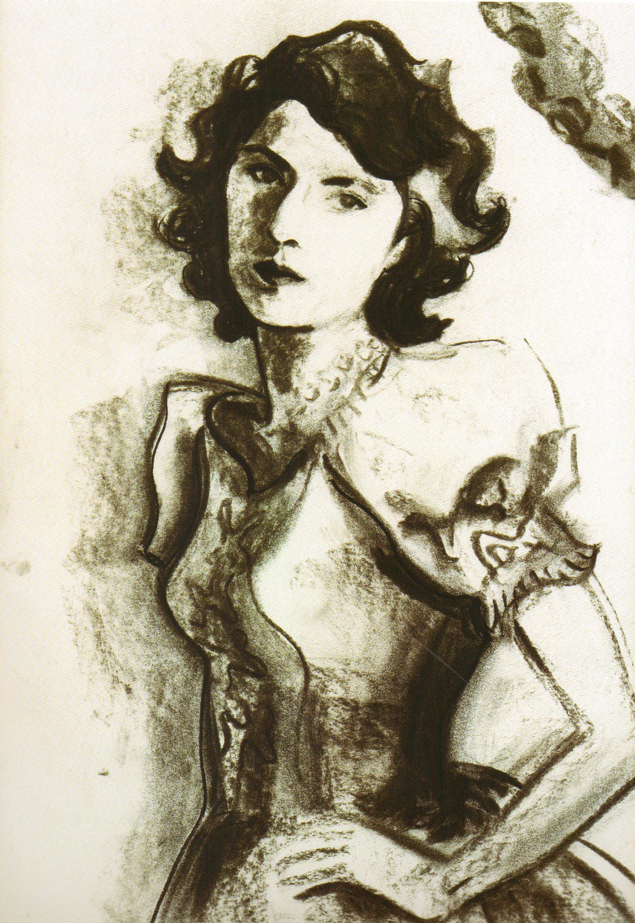 Peyton who must know art's underlying principle, that every painter paints himself, is secretive. She once turned up to explain her artwork to art students and said nothing. Yet we can still find meaning by comparing her images to those of the great masters. For instance, the range of people she portrays, though odd for a painter today, is in tune with earlier masters: royalty, creative celebrities and close friends. Even the eyes in her portrait of Napoleon betray an artist's mind. The far eye is clearly delineated, as in life, for exterior vision; the near one faint, drawn nearly to the point of being erased, perhaps even blind. The latter, as explained under the theme Insight-Outsight, symbolizes poetic insight. Thus Peyton's Napoleon, like those we have already shown by Ingres, David and Delaroche, is the artist herself....on the point of becoming immortal.