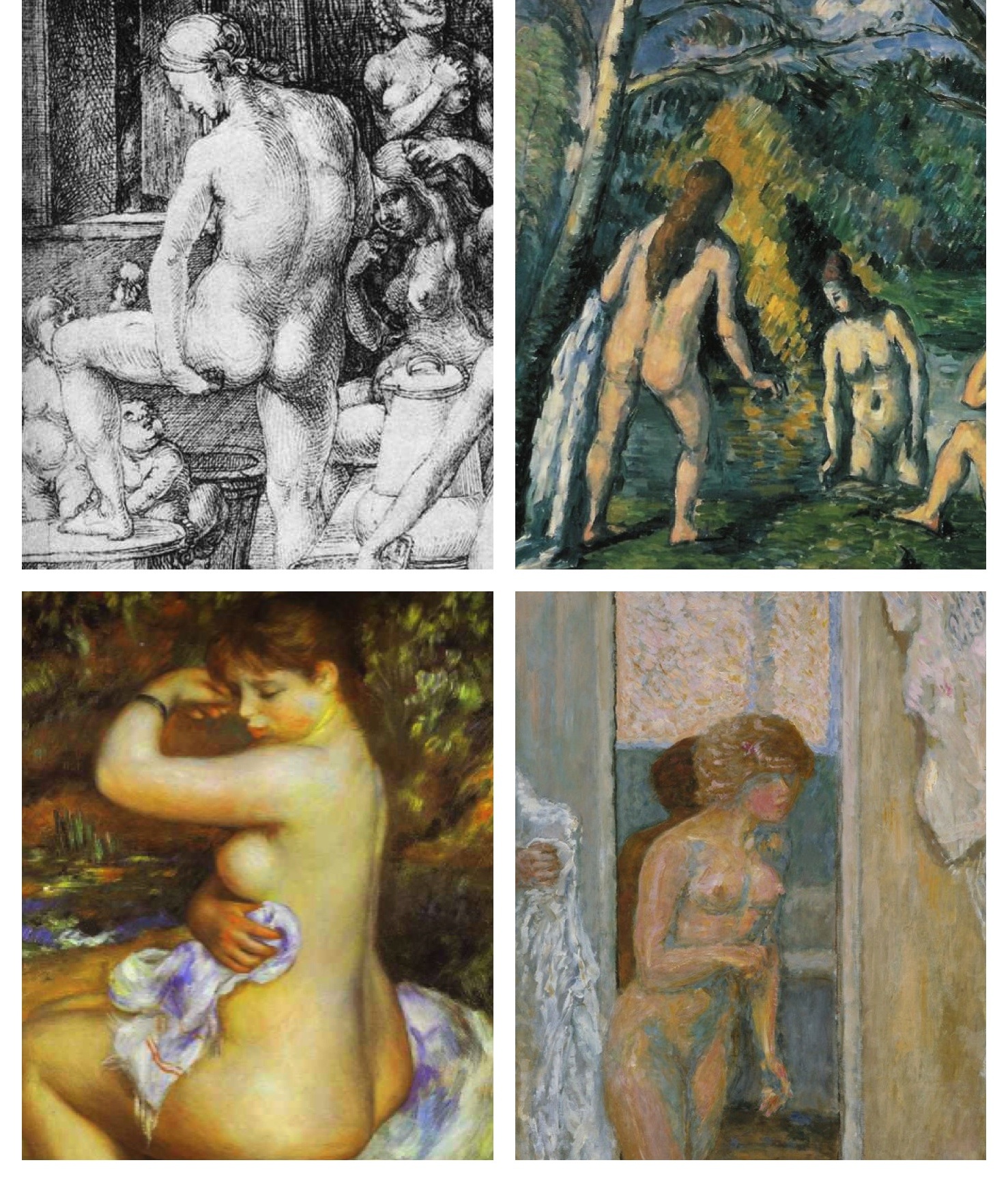 Top L: Dürer, The Women's Bath, detail (c.1496) Engraving on paper