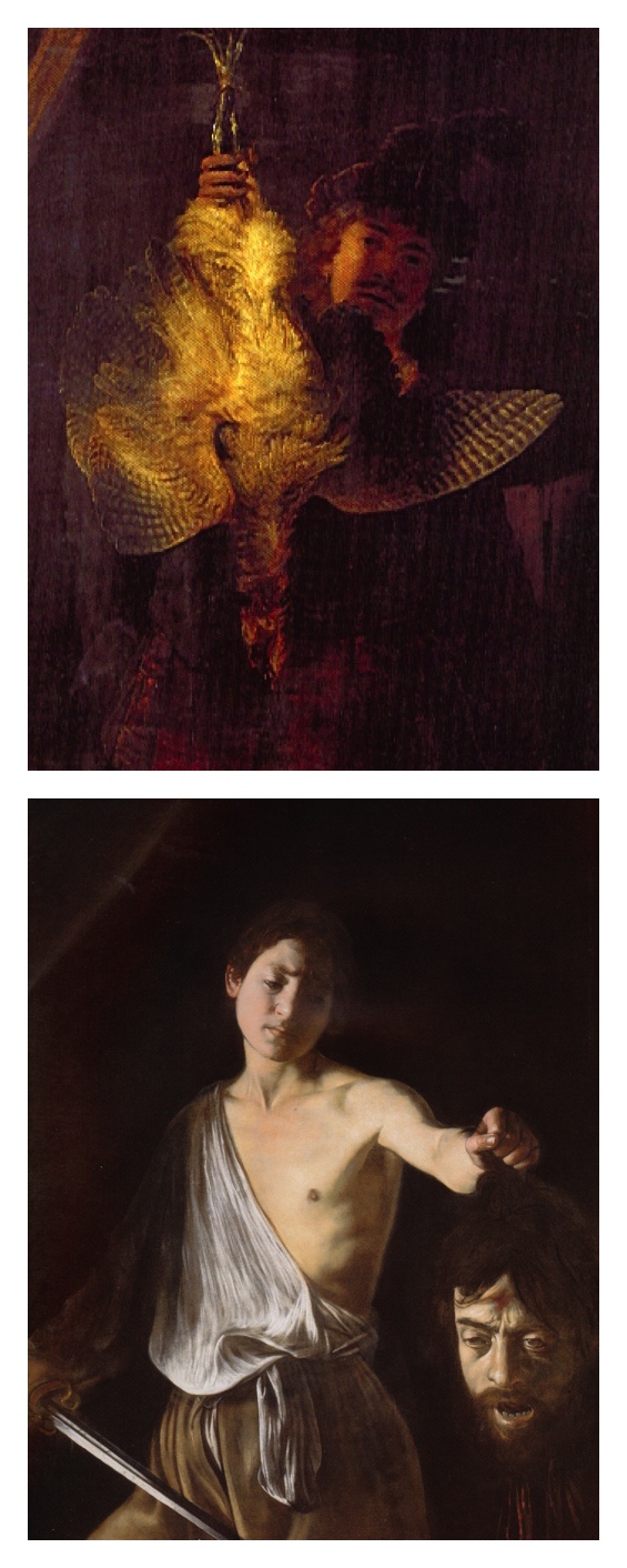 Top: Rembrandt, Self-portrait with a Dead Bittern (1639) Oil on panel. Gemäldegalerie, Berlin