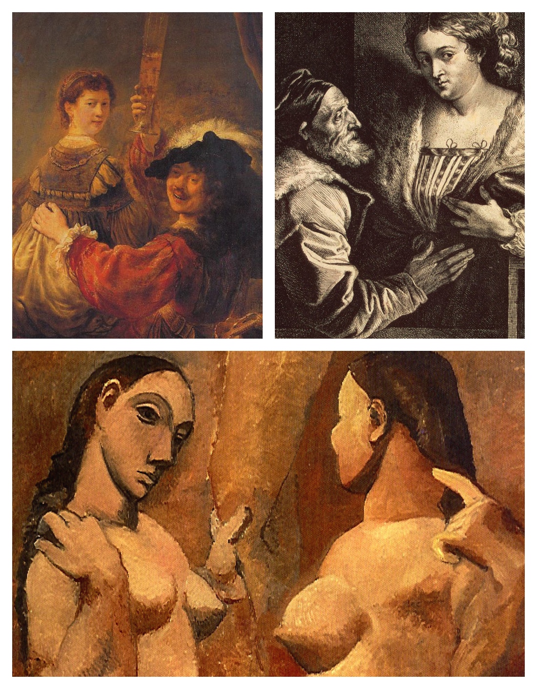 Top L: Rembrandt, Self-portrait with Saskia, detail (c.1635)
