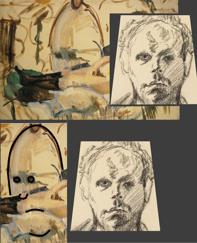 Lower R: Tilted detail of Oldenburg's Self-portrait