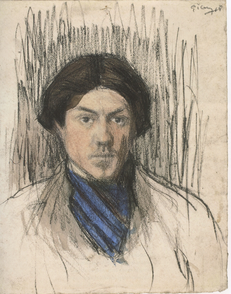 Picasso, Self-portrait (late 1901/early 1902) Black chalk with watercolor on paper. National Gallery of Art, Washington, DC