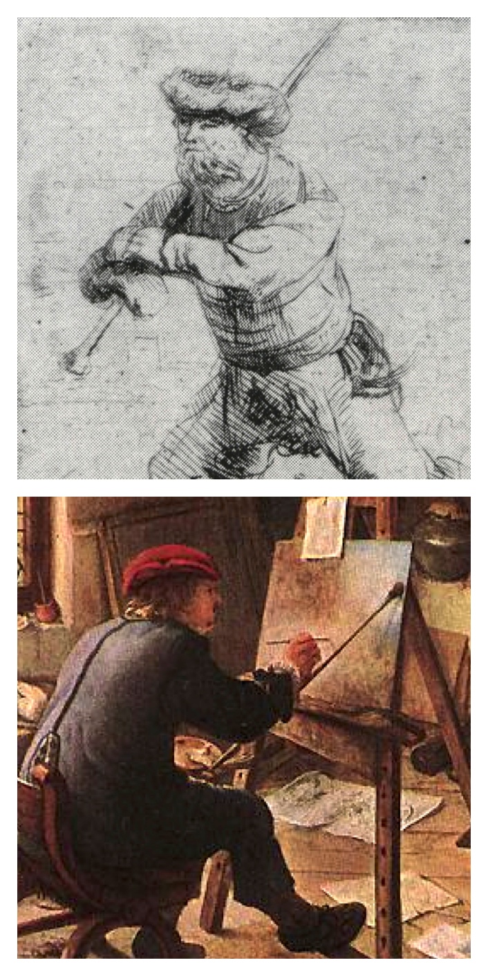 Bottom: Adriaen van Ostade, The Artist in His Studio, detail (1663) Oil on panel. Gemäldegalerie Alte Meister, Dresden.