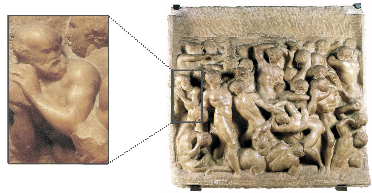 Michelangelo, Battle of the Lapiths and Centaurs with detail of Phidias (c.1492) Marble. Casa Buonarotti, Florence.