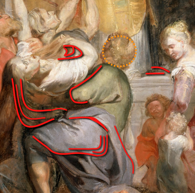 Once you know how great art is made, some features, never seen before, are unmissable. Take, for instance, Rubens' face staring out of the left-hand side of this detail.