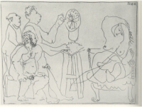 Some of Picasso's late etchings look as though they may have been tossed off without much thought. It's only when you can begin to study them closely that you realize how brilliant he was. In this print called In the Sculptor's Studi