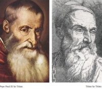 Continuing our series in honor of the Metropolitan Museum's current exhibition of Renaissance portraits we have Botticelli's portrait of Michele Marullo Tarcaniota on the left compared to Botticelli's earlier self-portrait on the rig