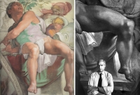 How large are Michelangelo's figures on the Sistine ceiling? Visitors find it difficult to tell from the chapel floor because they are so far away. It was not until I saw the photograph at right that I realized their true size. Jonah's thigh is