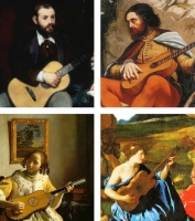 My recent post on artists using stringed instruments as metaphoric palettes was restricted to guitars so I did not use this image. Perhaps I should have because while musicians may think lutes and guitars are very different, in artworks they are