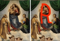 It's a red-letter day for Raphael. I have been showing a lot of letters recently, how Raphael and Renoir each used objects shaped like an R, how Manet and Matisse used M’s and Ingres used an I. And I doubt before this evening that anyone has e