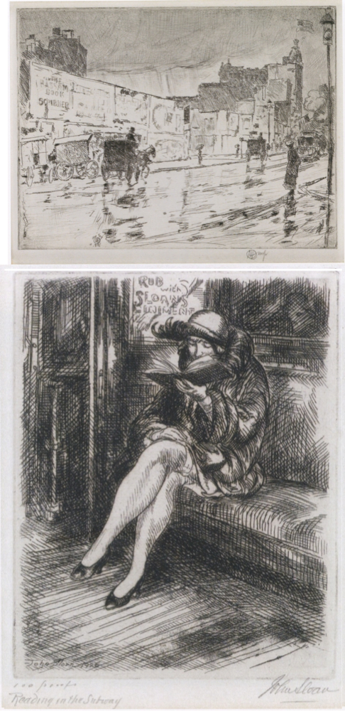 Bottom: John Sloan, Rider in the Subway (1926) Etching and engraving on paper. Third State (of 3)