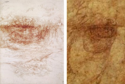 Left: Leonardo da Vinci, Storm over the Alps (c.1499)