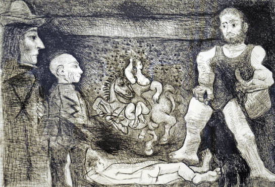 Picasso, Plate 1 from Suite 347, Self-portrait and Circus Figures (March 1968) Etching on paper