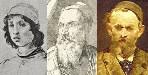 L. to R.: Manet, Copy after Self-Portrait by Filippino Lippi ; Britto, Engraving after Self-Portrait by Titian (now lost); Manet, Self-Portrait in Skull-Cap