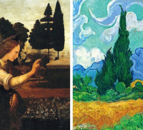 Leonardo da Vinci, Annunciation, detail (c.1472-5) Van Gogh, Wheatfield with Cypresses, detail (c.1889)